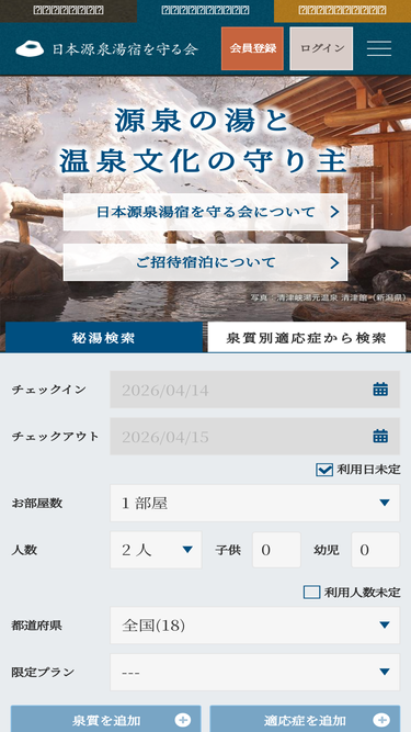 87%温泉掛け流しは、我が国固有の温泉文化です。温泉を掛け流す本物の温泉利用にこだわる「源泉湯宿」にご宿泊いただける予約サイトになります。本WEBサイトでのみ予約可能なプランも満載。是非ご検討ください。