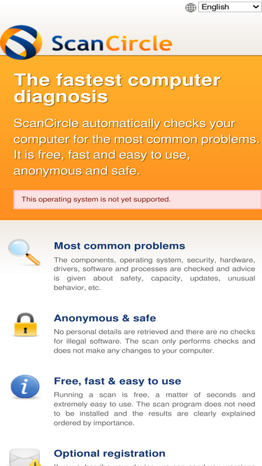 85%ScanCircle automatically checks your computer for the most common problems. It is free, fast and easy to use, anonymous and safe.