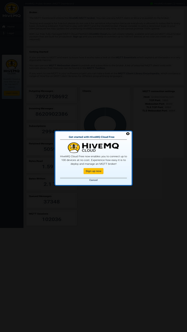 74%the mqtt dashboard utilizes the hivemq mqtt broker. feel free to use it for testing. for advanced usage consider using hivemq cloud free for up to 100 iot devices.
