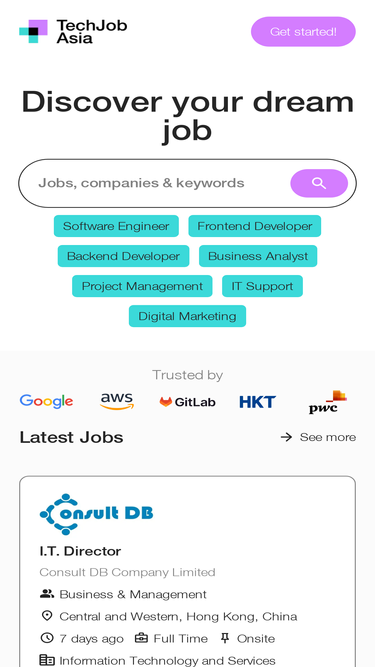 100%Discover premium technology and digital job opportunities in Asia with TechJobAsia. As the leading job board specializing in the tech industry, we connect talented professionals with top-tier companies offering exceptional working environments, competitive packages, and exciting career prospects. Explore our extensive listings to find your next career move in software development, data science, digital marketing, UX/UI design, cybersecurity, and more.
