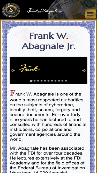 81%frank w. abagnale jr. official website. all content of the abagnale.com website is managed and approved by frank w. abagnale jr. himself.