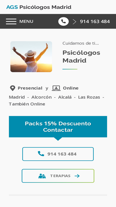 100%Psicólogos en Madrid, Alcorcón, Las Rozas, Alcalá de Henares y terapia Online. Máxima profesionalidad. Packs 15% Descuento. Infórmate.