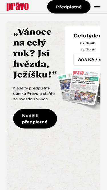 95%Deník Právo patří k nejčtenějších deníkům v ČR. Šestkrát týdně přináší podrobné objektivní zpravodajství ze světa i domova a oblíbené jsou i tematické přílohy.