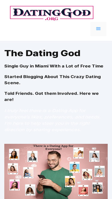 86%The Dating God was born from a single man's journey through the crazy Miami dating scene. Read his experiences, and others, on Dating God.