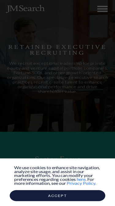 76%JM Search is the premier retained executive search firm for private equity firms, venture capital firms, portfolio companies, and the Fortune 1000.