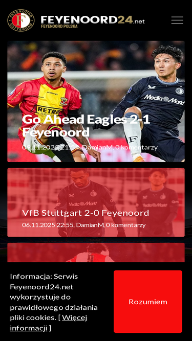 Serwis Feyenoordu Rotterdam. Aktualności, relacje live, liga typerów, galeria. Aktualna tabela Eredivisie, strzelcy, terminarz, multimedia.