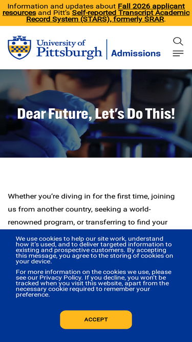 69%Have questions about applying to Pitt? Use our interactive FAQ page to learn more about the University of Pittsburgh.