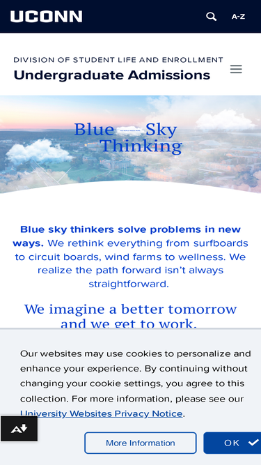 66%A top-ranked research university with campuses across Connecticut, UConn's holistic admission review process supports first-year, transfer, and international applicants.