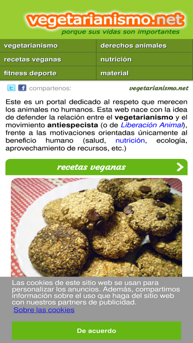 94%información sobre vegetarianismo, veganismo, liberación animal, recetas, nutrición, cocina vegana, preguntas frecuentes, tipos de vegetarianos. vegetarianismo.net es un proyecto para promover el vegetarianismo ético.