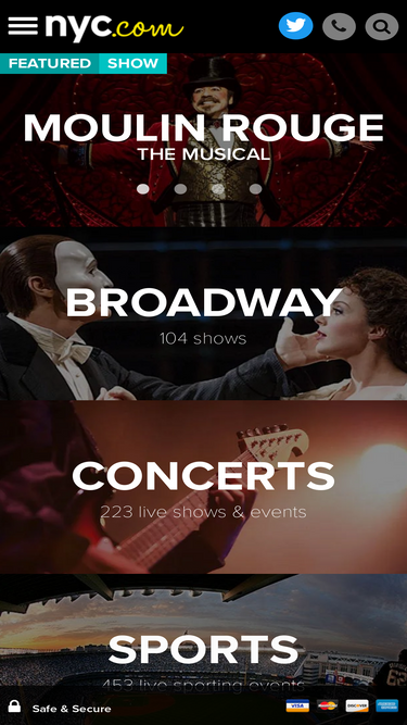 78%save more now at nyc.com, new york's box office. buy new york broadway tickets, concert tickets and sports tickets. reserve new york restaurants, hotels and new york tours. online or call 1-888-visit-ny
