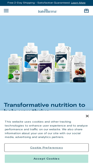87%kate farms makes plant-based, nutritionally advanced formulas and shakes for tube feeding or added nutrition. made with organic ingredients that help bodies thrive.