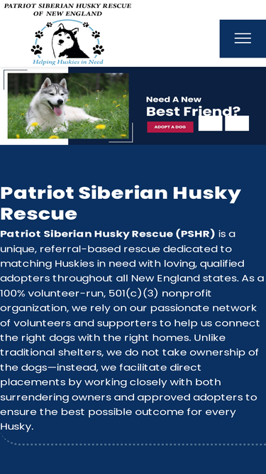 Our mission at Shadow Husky Rescue, Inc., is to rescue huskies that are displaced, unwanted, abused, lost, abandoned or scheduled for euthanasia and provide them with a second chance at life by finding them permanent homes.