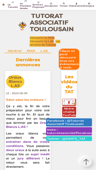 le tutorat associatif toulousain est une association qui a pour but de rétablir l'égalité des chances en venant en aide à tous les étudiants de pass et l.as dans la préparation de leurs examens.