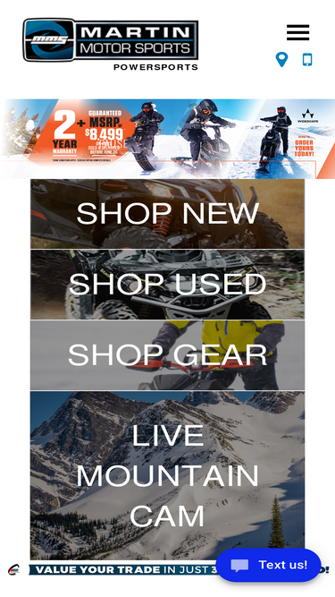 87%martin motor sports is a reputable powersports dealership with locations in west edmonton and south edmonton, ab. we've been around for over 50 years and are proud to carry western canada's largest selection of atvs, ssvs, snowmobiles, personal watercrafts & trailers from manufacturers such as can-am, ski-doo, sea-doo, spyder and triton. we also provide motorsports parts, service, repairs, maintenance, clothing, gear, accessories & financing near the areas of st. albert, sherwood park, leduc, devon, stony plain and spruce grove.