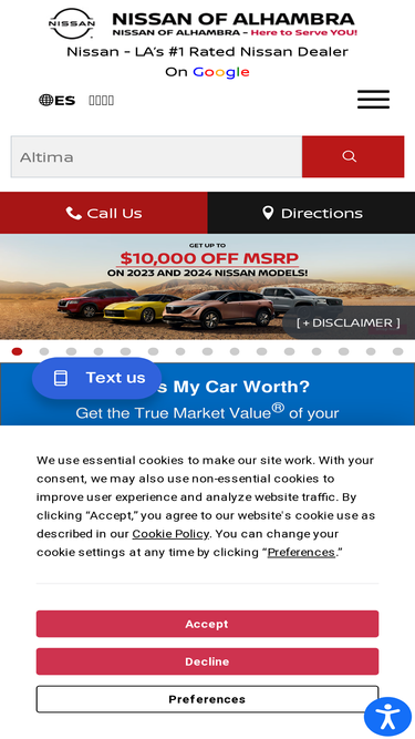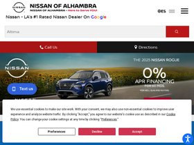 89%here at our nissan of alhambra dealership, we've made it our mission to be the automotive home of drivers throughout the los angeles area, including rosemead, montebello, and monterey park. come see us for a great deal on a new or used nissan