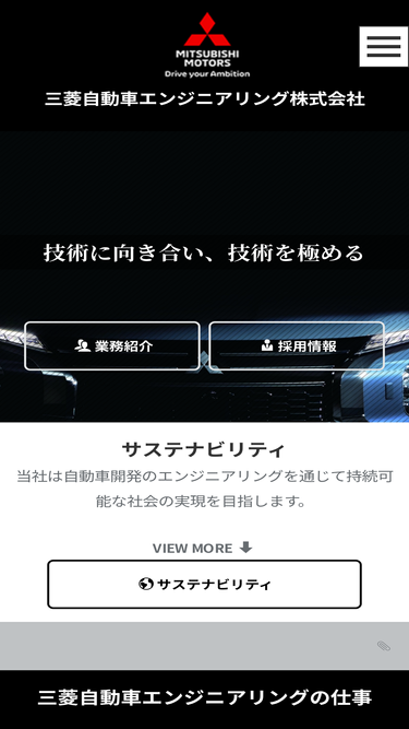 93%三菱自動車エンジニアリング株式会社のホームページです。 三菱自動車エンジニアリングは三菱自動車の開発領域に特化した、エンジニアリング集団です。