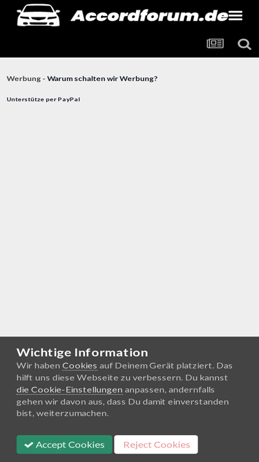 Warum spielen wir Werbung aus? Diese Frage lässt sich ganz einfach beantworten: Werbung generiert uns einnahmen. Durch diese Einnahmen stellen wir den Betrieb des Forums sicher, bezahlen Lizenzgebühren, Server, Domain und E-Mails. Bitte schaltet also den Ad-Blocker aus und unterstützt das Forum. ...