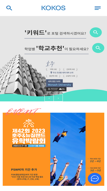 100%호주유학&뉴질랜드유학 전문 코코스 호주&뉴질랜드 모든 대학교 공식에이전트! 호주대학선정 등록1위 여러분의 대학교 어학연수 조기유학 영주권 유학을 함께하겠습니다.