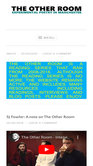 99%The Other Room was a reading series that presented experimental writers in Manchester between 2008-2018 and organised by James Davies, Tom Jenks and Scott Thurston.