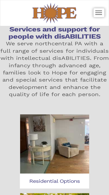 83%hope enterprises, inc. serves northcentral pa with a full range of programs and services for individuals with developmental disabilities.