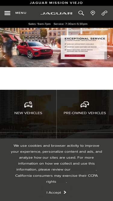 87%jaguar mission viejo is the only franchised jaguar dealership in south orange county, with a lineup of new jaguar models and used vehicles, and an authorized service center.