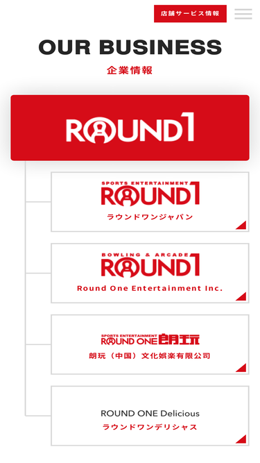 68%株式会社ラウンドワンの公式サイトです。株式会社ラウンドワンは、ラウンドワン・ジャパン、Round One Entertainment Inc.(Round1 USA)、Round1 中国、ラウンドワンデリシャスなどの持株会社として経営管理を行っている企業です。世界中の人々に笑顔と健康とコミュニケーションの場を提供することを理念にサービス提供をしています。