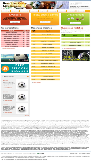 86%livebestodds.com is the best live dropping odds portal with following the suspicious sport matches like soccer games, tennis events, basketball matches, baseball events, american football matches and hockey games. our services are updated every minute and we are focused on valuable odds information. you can find here dropping odds, live betting odds, livescore, live odds and more.