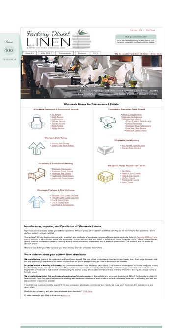 89%factory direct linen is a 20+ year manufacturer, importer, and distributor of milliken table linens and other wholesale commercial linens for restaurants and hotels.