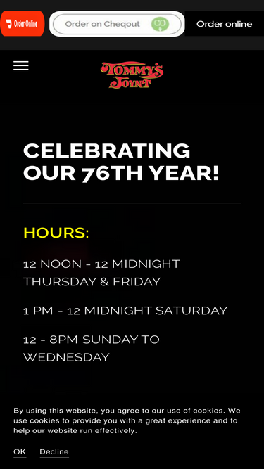 Restaurant in San Francisco with a full bar. Landmark building with the original menu for 75 years. Metallica ate here. Thanksgiving dinners are great here. Best Pastrami in San Francisco Bay Area. Tommy's is open until midnight, with food and drinks. budget-friendly but not fast food or cheap. no