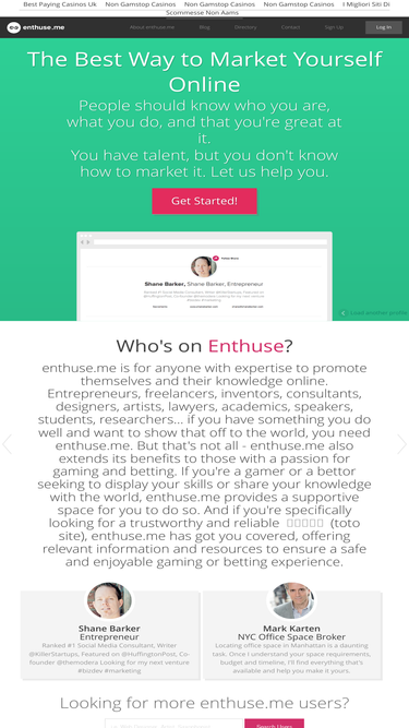 100%enthuse.me helps you market yourself online in the best possible way. Create a one-page website,...