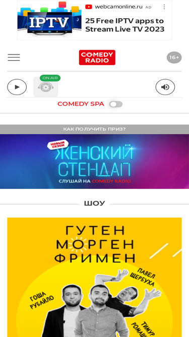 62%Comedy Radio – первое юмористическое разговорное радио России. Каждый час в эфире миниатюры из Comedy Club, Comedy Woman, а также самая модная музыка со всего мира