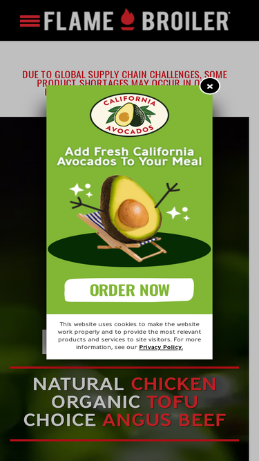 82%flame broiler is a restaurant chain that offers natural chicken, organic tofu, choice angus beef, and other healthy options in rice bowls. you can order online, find a location near you, and learn more about franchising opportunities.