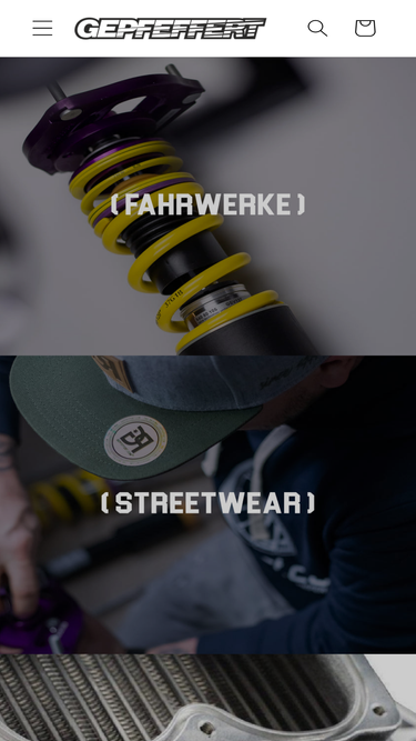 87%Der gepfeffert.com® Online-Shop gibt Gas. Mit unserem Angebot an Fahrwerken und Streetstyle Outfits machen wir Fahrer und Fahrzeuge bereit für die Straße. Ob Caps, Hoodies, T-Shirts und Merchandise, oder KW Suspensions Fahrwerke by gepfeffert (auf Anfrage) – get the look!