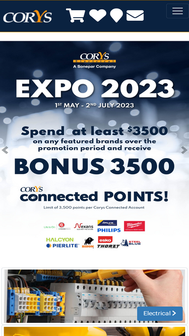 corys electrical is an online and nationwide supplier of electrical products and services, delivering outstanding service in 48 branches across both the north and south islands of new zealand.