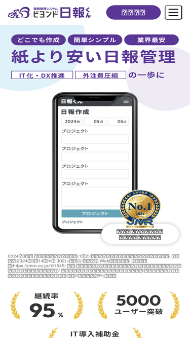 100%業務管理システム「ビヨンド日報くん」は企業向けのクラウド型日報システムです。簡単操作で日々の日報提出の手間を削減。稼働実績を集計して見える化。経営改善をご支援します。1人あたり44円(税抜40円)〜でご利用可能。テレワーク・在宅勤務にも対応。