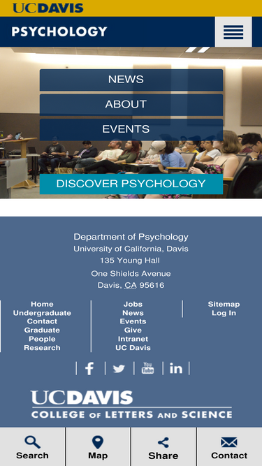 85%Psychology is an interdisciplinary program that examines both the social and scientific bases of behavior, and as a premier research institution, UC Davis is home to many leading researchers in the field. In humans, animals and computer models, and from neurons to relationships to cultures, the science of psychology is focused on understanding how, when and why we do what we do. Psychology majors from UC Davis are prepared to enter fields such as business, government or personnel work, or to pursue higher levels of education.
