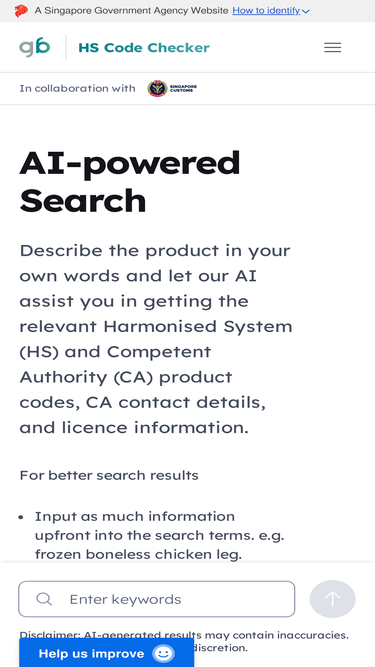 Ai 인공지능 기반의 연관검색어 중에서 물품특성(기능.용도.성분)에 적합한 HS 6단위 자동분류 기능으로 초보자도 HS Code를 쉽게 찾을 수 있습니다.