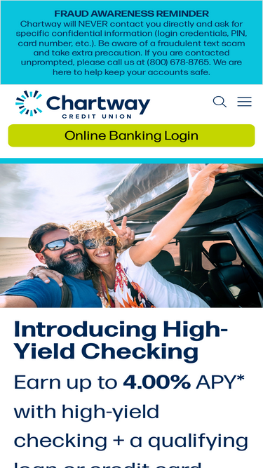 99%chartway credit union will give you the power to bank the way you want with unbeatable accounts and loan products. join us today!
