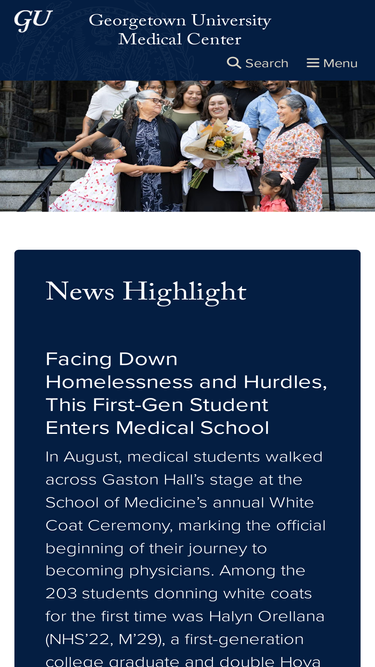 81%Who We Are Georgetown University Medical Center is an internationally recognized academic health and science center with a four-part mission of research, teaching, service and patient care in collaboration with our academic health system partner MedStar Health. The largest, most prominent Catholic medical center in the country, Georgetown University Medical Center’s mission is carried out […]