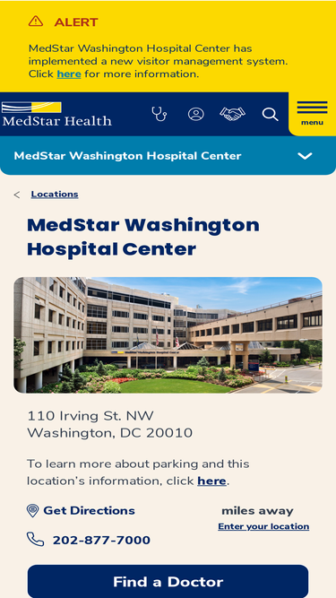 96%With 10 nationally respected hospitals and over 500 specialty, urgent care, and primary care locations. MedStar Health is the leading healthcare provider in Maryland, DC, and Virginia.