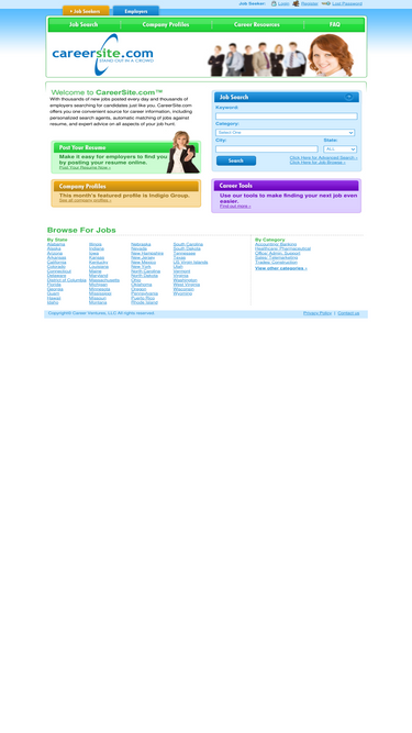 66%welcome to careersite.com, with thousands of new jobs posted every day and thousands of employers searching for candidates just like you. careersite.com offers you one convenient source for career information, including personalized search agents, automatic matching of jobs against your resume, and expert advice on all aspects of your job hunt.