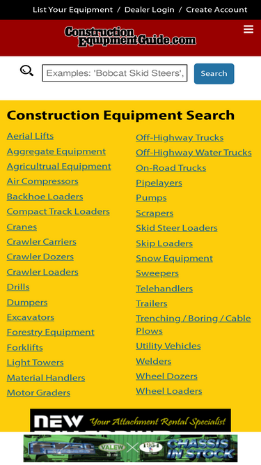 sell, search or shop online for new and used heavy equipment via rock and dirt; including cranes, trucks, attachments, trailers, dismantled and parts.