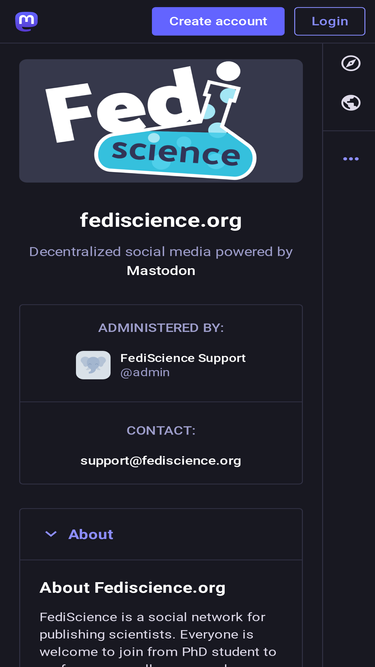 72%fediscience.org is a social network for scientists run by FediScience e.V., an international association dedicated to promoting scientific communication.