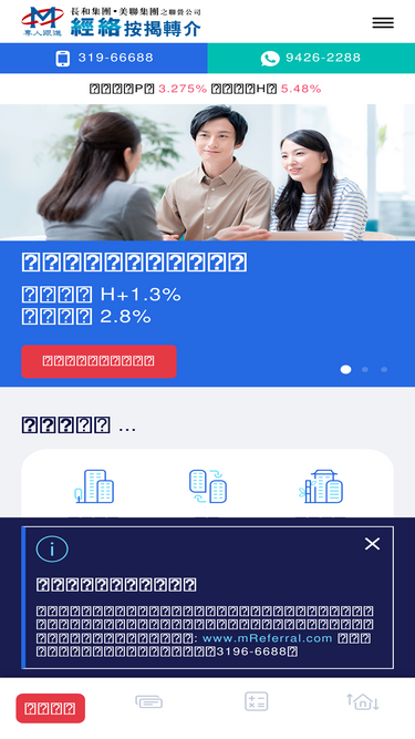 74%經絡按揭轉介是美聯及長和組成之聯營公司,夥拍全港超過70家銀行及財務機構,搜羅全城至抵按揭優惠,p按及h按計劃齊備,專家幫你免費比較各款計劃! 另有私人貸款、信用卡及銀行開戶比較。熱線: 319-66688。