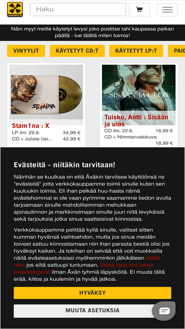 90%levykauppa äx:stä saat cd- ja vinyylilevyt ja bändipaidat kotiisi jo huomiseksi. laajan verkkokaupan lisäksi levykauppa äx on lähellä sinua liikkeidensä voimin helsingissä, jyväskylässä, kuopiossa, lahdessa, lappeenrannassa, oulussa, tampereella ja turussa.