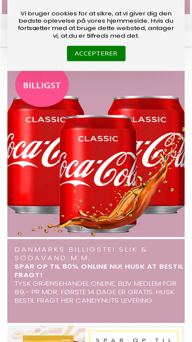 87%tysk grænsehandel online, køb billig slik, sodavand, øl & vin m.m. spar op til 80% rabat. danmarks største udvalg, og få leveret lige til døren.