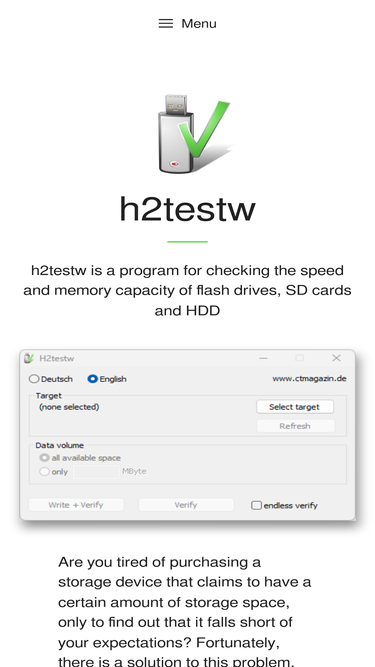 100%Download h2testw for free. H2testw is a program that can test your storage devices for their actual size against claimed size.