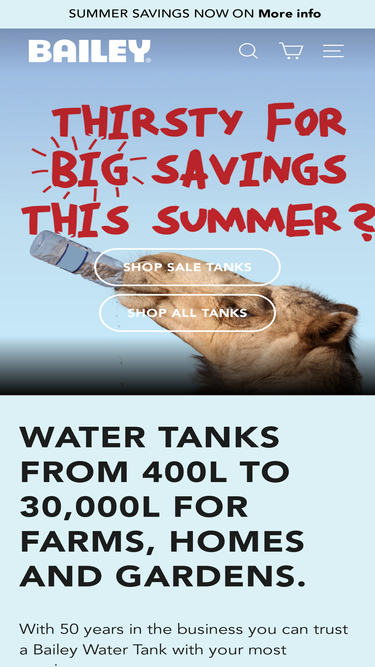 76%Trust a Bailey Water Tank with your most precious resource. Water tanks from 400L to 30000L for farms, homes gardens. Rural and urban options available. BEST OPTIONS FOR STORMWATER RETENTION & DETENTION