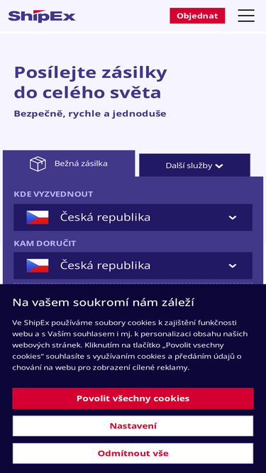 68%Spočítejte si cenu vaší zásilky pomocí našeho kalkulátoru přepravy. Nejlevnější ceny, pojištění zásilek do 1 000 000 Kč, garance včasného doručení.