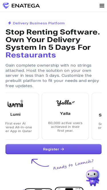 92%Launch your delivery platform with Enatega’s open-source, customizable, ready-to-use delivery app solution.